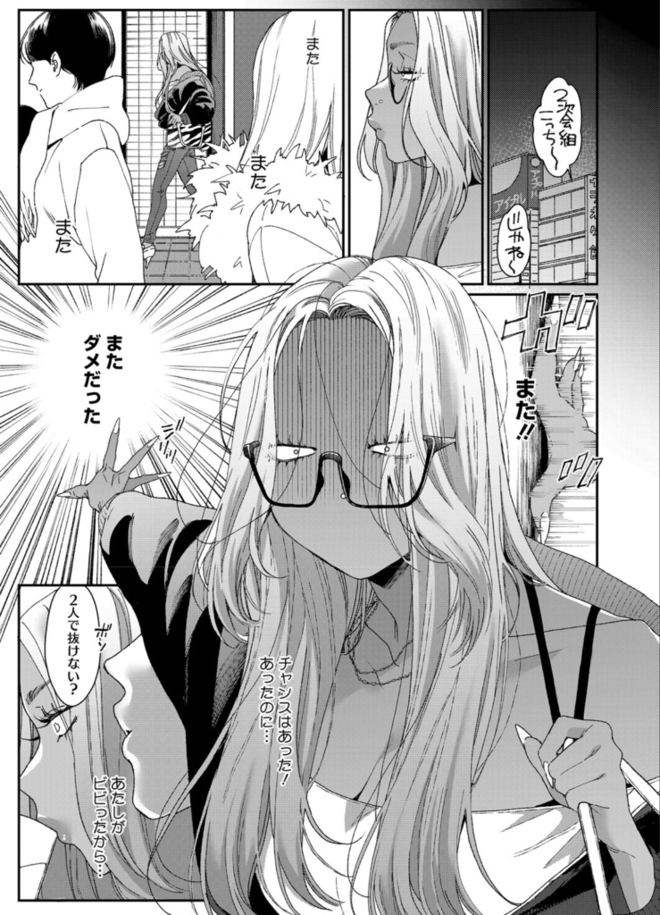 本作のヒロイン、池田(いけだ)さんは校内でも指折りの人気を誇る黒ギャル。周囲からは「毎晩のように遊んでそう」という勝手なイメージを持たれていますが、実際の彼女は、いまだに男性と結ばれたことのない正真正銘の処女でした。年を重ねるごとに膨らむ「この見た目で処女なのはマズい……!」という焦り。池田さんは、ついに一大決心をして合コンに臨みます。