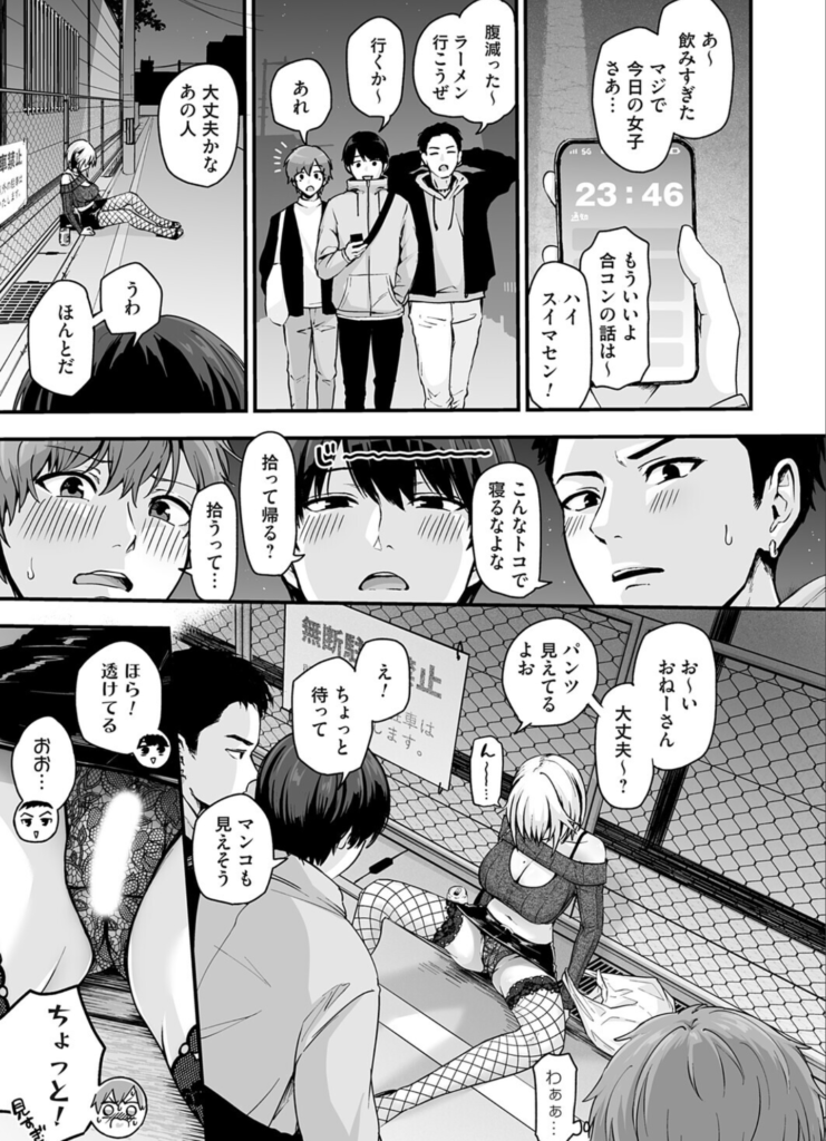 本作のヒロイン・大蛇巳羽は、一目見ただけで脳が震えるほどの巨乳(Iカップ!)の持ち主。しかし、彼女の本質はその清純そうな美貌ではなく、抑えきれない「セックスへの渇望」にあります。路地裏でおじさんと励んだ直後、路上で寝てしまうという奔放さ。そして、声をかけてきた大学生たちを逆に「食って」しまう肉食っぷり。この圧倒的な能動性が、読者を一気に物語へと引き込みます。