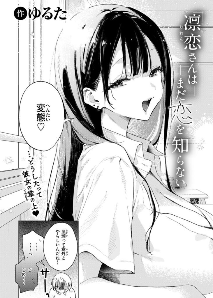 2026年4月17日、COMIC快楽天ビーストより、新進気鋭の作家・ゆるた先生の最新単話作品『凛恋さんはまだ恋を知らない』が配信開始されました。本作は、クラスの注目の的である黒髪ギャル・凛恋(りれん)さんと、彼女に弱みを握られた主人公による、主従関係を超えた「独占愛」を描く28ページの濃厚ストーリーです。